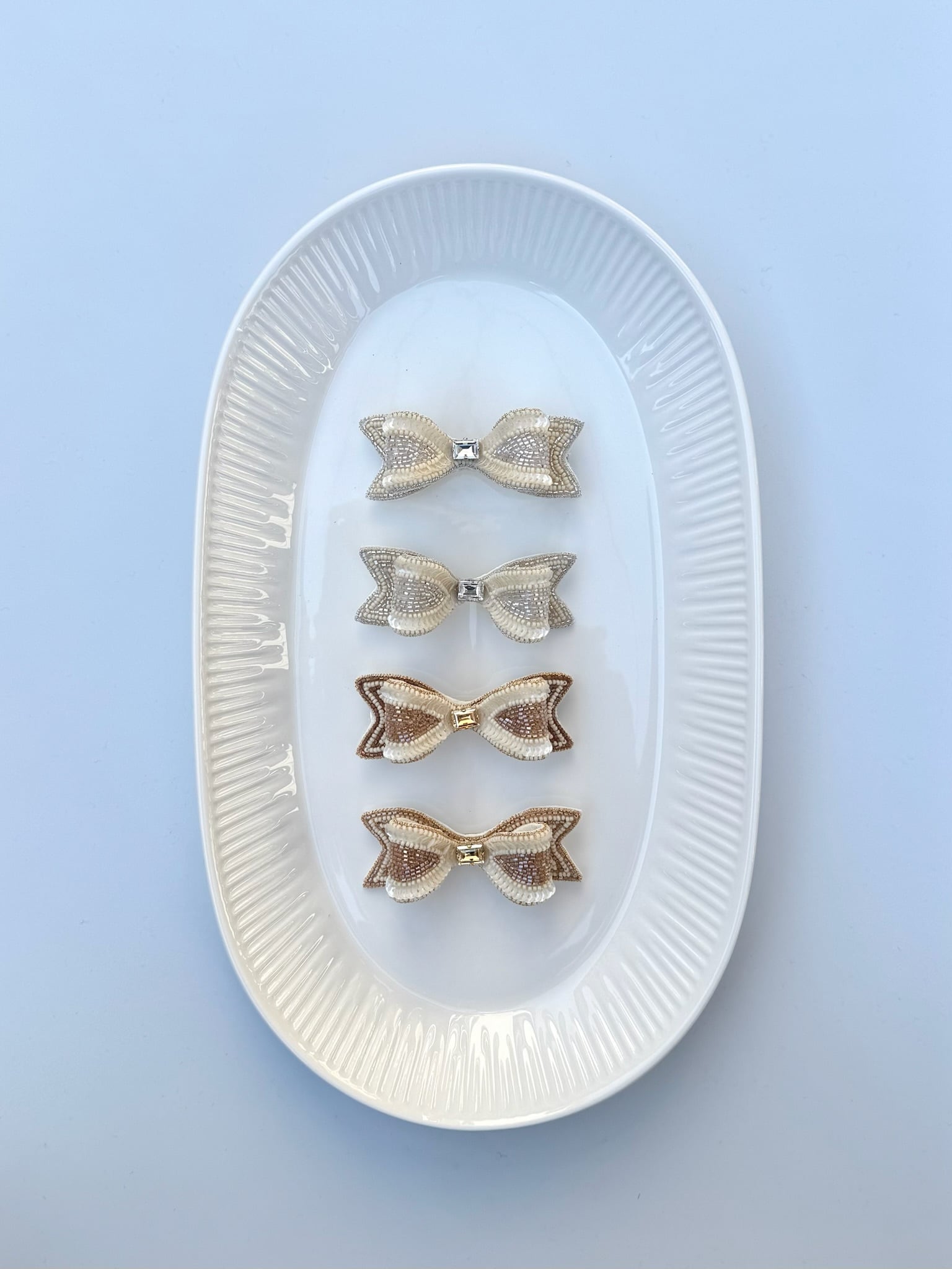 立体的なリボンが魅力を引き立てるバレッタです。