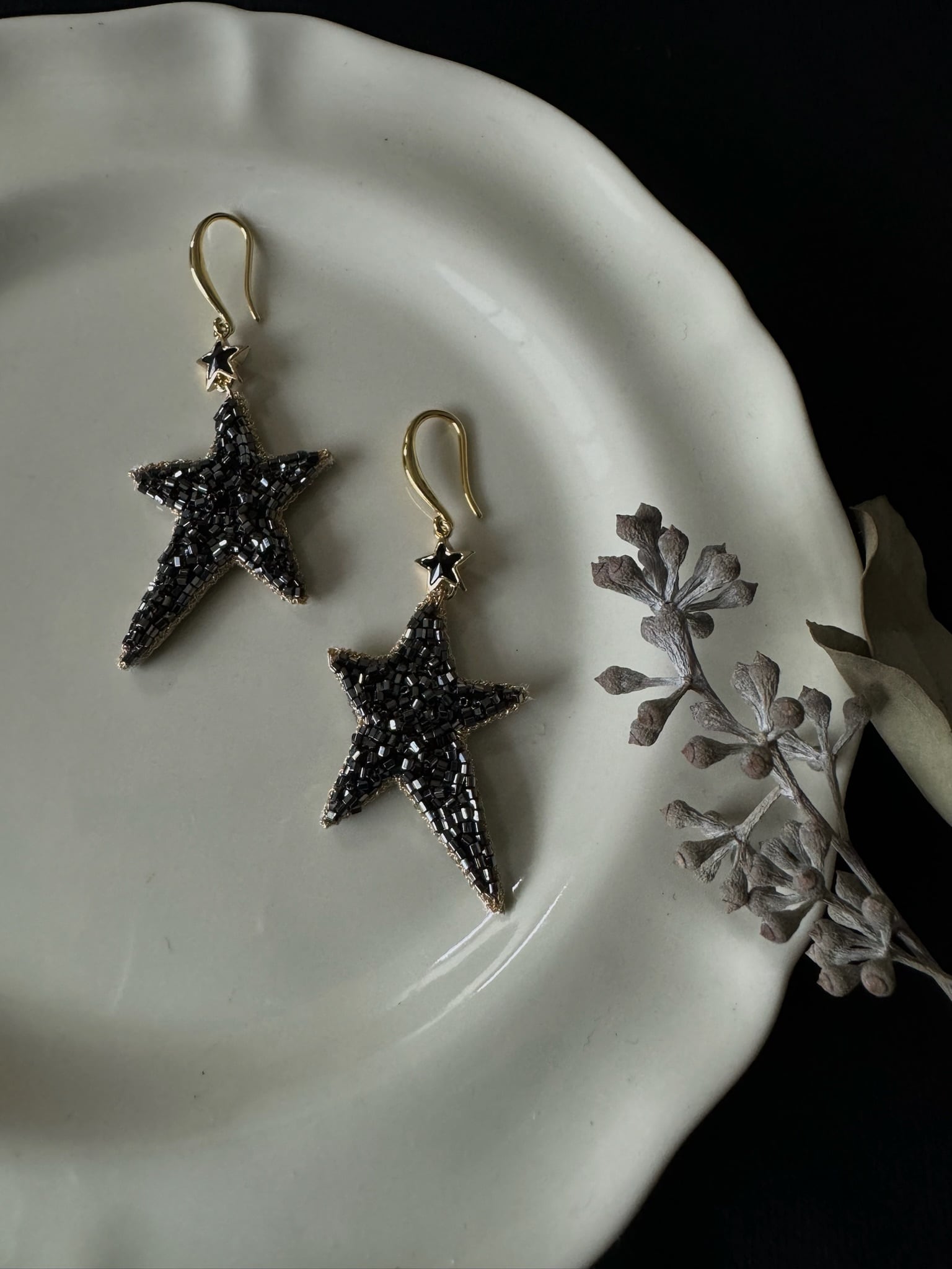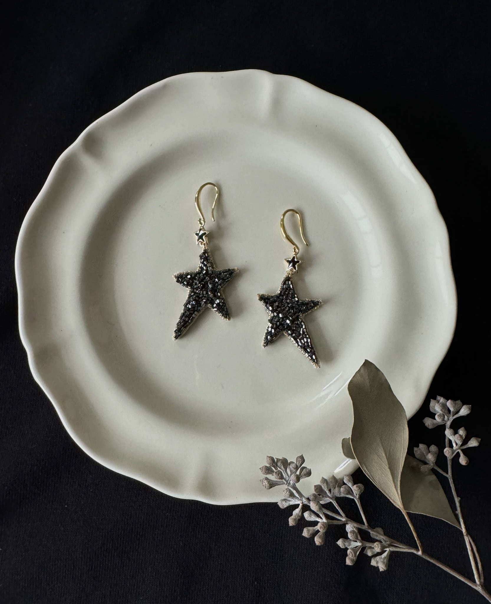 装身具【twinkul star】は、鉱物のように輝く星のモチーフと、盛り上がったビーズが特徴の華やかなアイテムです。